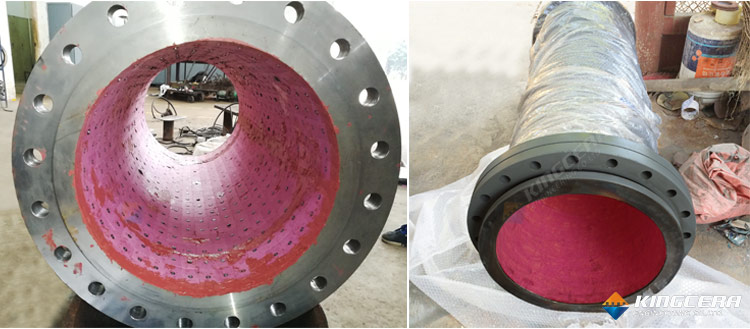 1. 粘貼式:粘貼式是用粘膠將耐磨陶瓷張貼在設(shè)備內(nèi)表面。這種方法裝置簡潔,本錢較低,格外合適現(xiàn)場大面積施工,節(jié)省維修時刻。可是因為粘膠主要是有機(jī)成分,不耐高溫(較高耐溫達(dá)150℃),且易老化。因而這種張貼方法只適用于常溫下的工作環(huán)境。