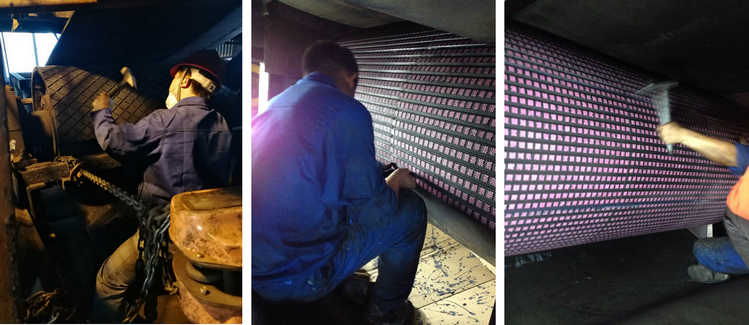 耐磨陶瓷滾筒包膠后,還需將滾筒現(xiàn)場恢復(fù)原樣。更關(guān)鍵是施工時(shí)間非常緊, 為不影響客戶生產(chǎn),精城施工隊(duì)每24小時(shí)需要完成一個(gè)滾筒的包膠。
